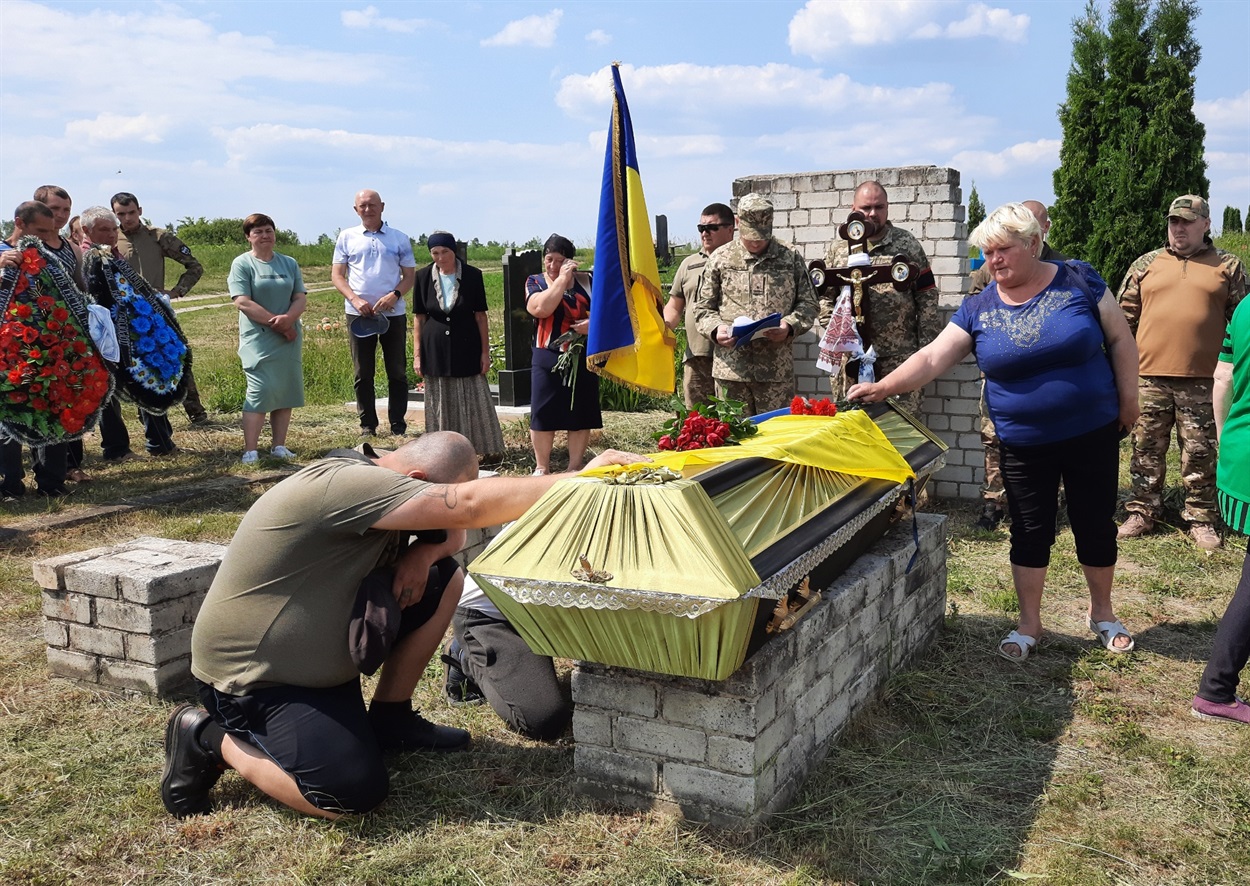 Прощалися з воїном у селі Слоут, де родина жила з 2008 року. Церемонія розпочалася біля будинку воїна. Прийшли рідні, друзі, односельці.