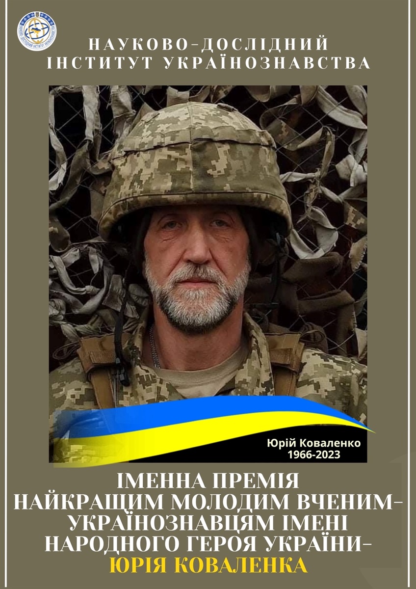 Науково-дослідний інститут українознавства започаткував іменну премію імені загиблого Героя із Глухова Юрія Коваленка. Її вручатимуть найкращим молодим вченим-українознавцям.