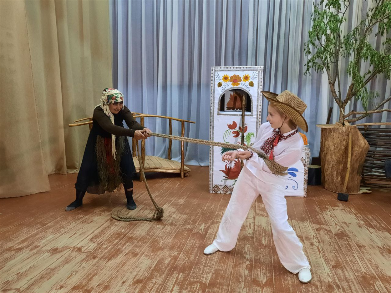 У Слоутському будинку культури глядачі побачили оновлену версію української народної казки, де Івасик-Телесик — не просто дитина, а хлопчик-воїн, який долає життєві перешкоди завдяки власній хоробрості та материнській любові.