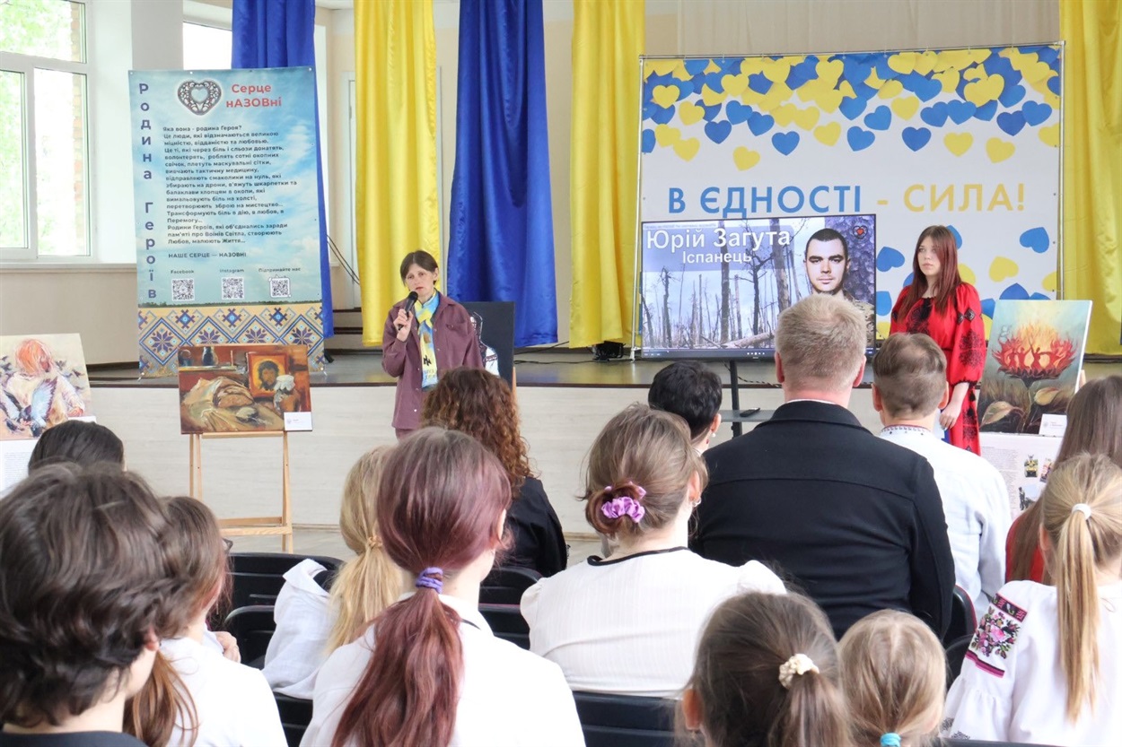 6 травня в одній зі шкіл Києва презентували мистецький проєкт «Серце назовні. Палітра пам’яті». Там показали картини, намальовані рідними полеглих військових, та розказали їхні історії. Вчора учні почули про «азовця» з Глухова Юрія Загуту.