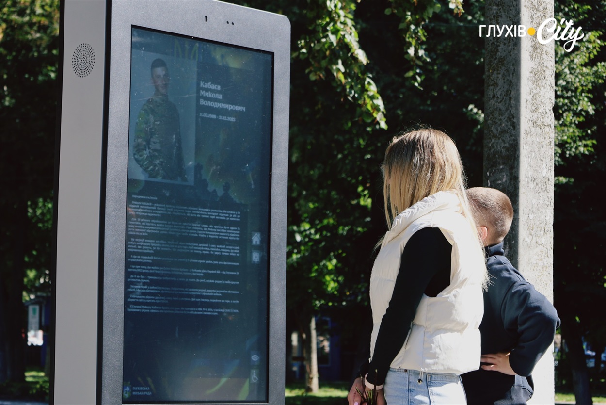 Поруч з алеєю з'явилася інтерактивна дошка. Це не просто екран, а своєрідний цифровий меморіал, де можна детальніше прочитати про кожного воїна, переглянути його фото та дізнатися про життєвий та бойовий шлях.