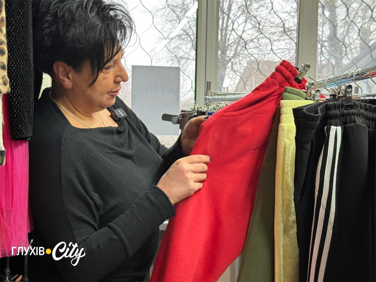 Підприємиця додає, що під час війни людей у Глухові поменшало. Раніше, каже, попит на одяг був вищим. Товар Наталія впорядковує, планує нові завози, але відвідувачів інколи бракує.