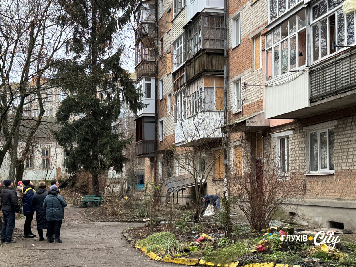 Цей п’ятиповерховий будинок уже був пошкоджений 27 липня 2024 року. Тоді росіяни вдарили по Глухову з реактивних систем залпового вогню. Вдруге обстріл у своїй квартирі пережила 89-річна Ніна Лагетко. Вікна її оселі ще після першої атаки залишалися забитими ДСП.
