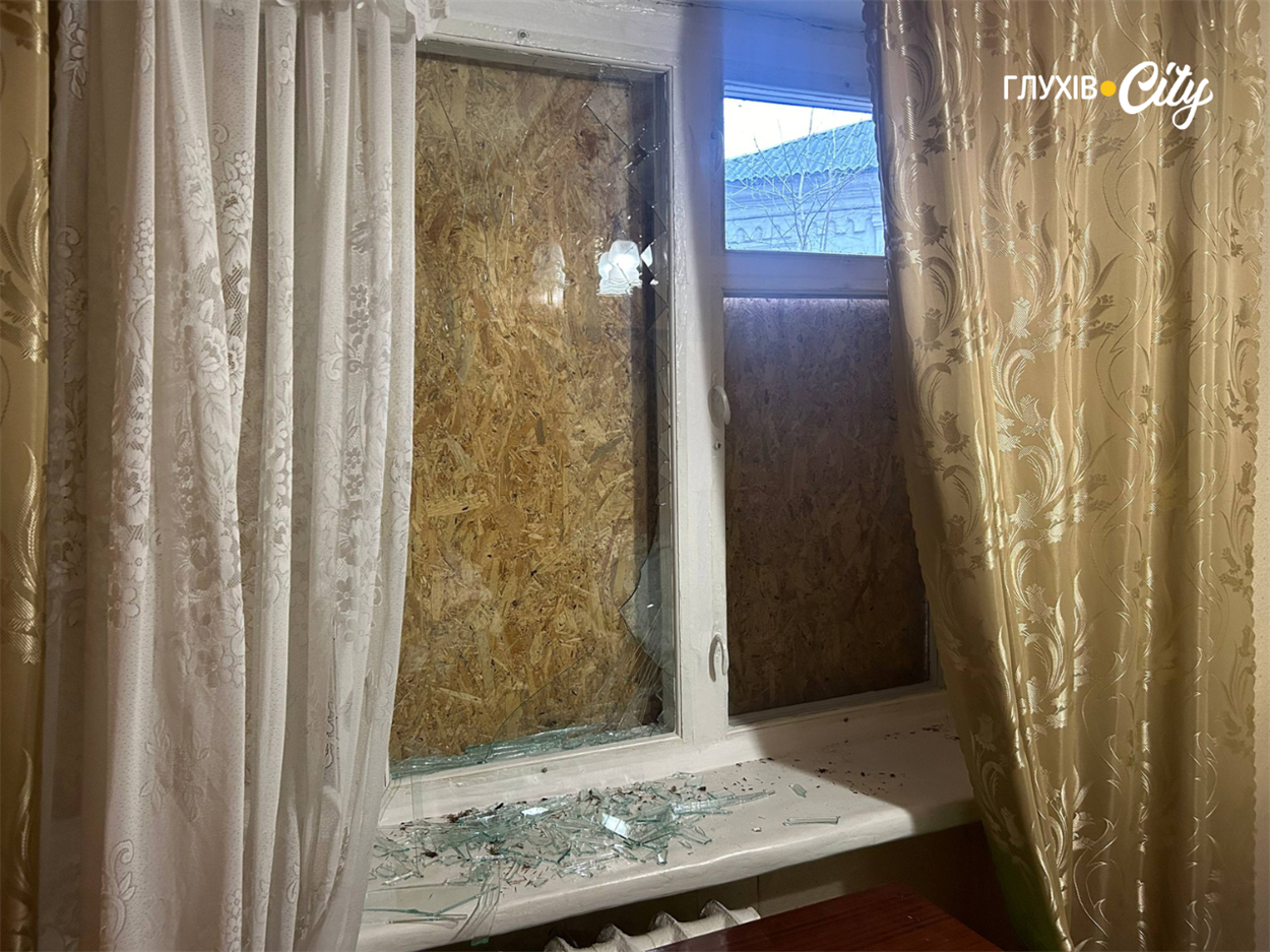Близько 10:30 російські війська атакували Глухів двома безпілотниками. Вибухова хвиля пошкодила кілька багатоповерхових і приватних будинків.