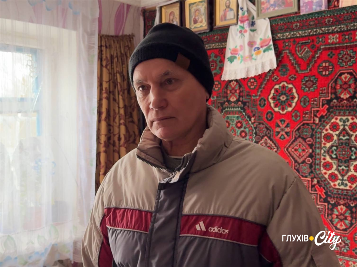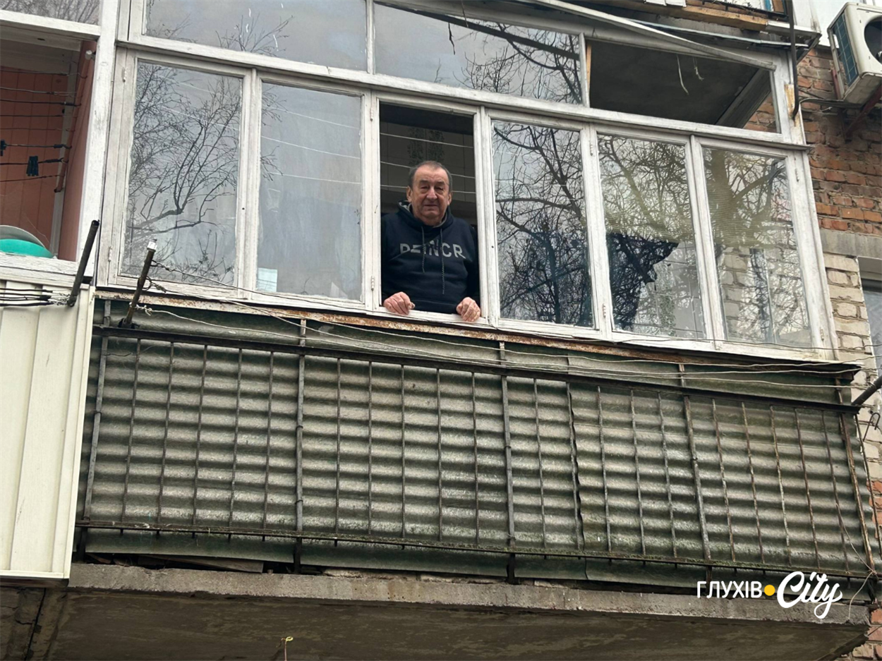 Коли лунали вибухи, глухівчанин Володимир Лавренюк ішов у гараж разом із дружиною. Після повернення додому побачив наслідки атаки у власній оселі: «Тут трохи вибито, там одне… Головне, що живі», – зазначає чоловік.