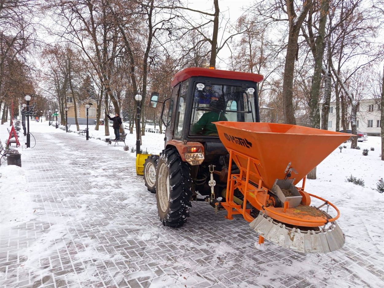 Зранку на центральних пішохідних алеях і в скверах працювала спецтехніка підприємства — трактор з навісним обладнанням. Комунальники очищали пішохідні доріжки від снігу та посипали їх протиожеледною сумішшю, щоб зменшити ризик травмування, повідомили в КП ЖКЦ.