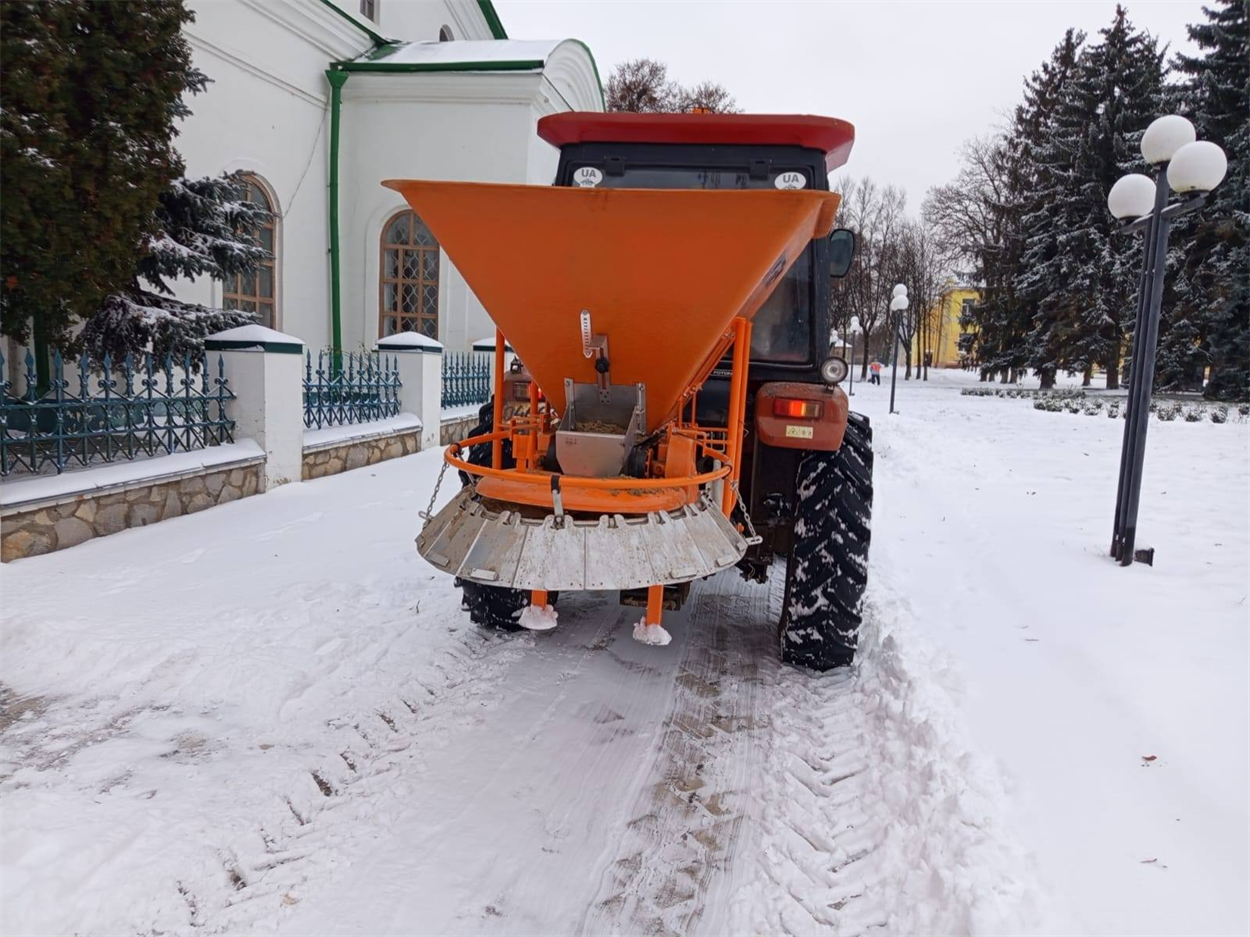 У Глухові комунальники протягом дня проводили механізоване прибирання снігу та обробку пішохідних зон для безпечного пересування містян.