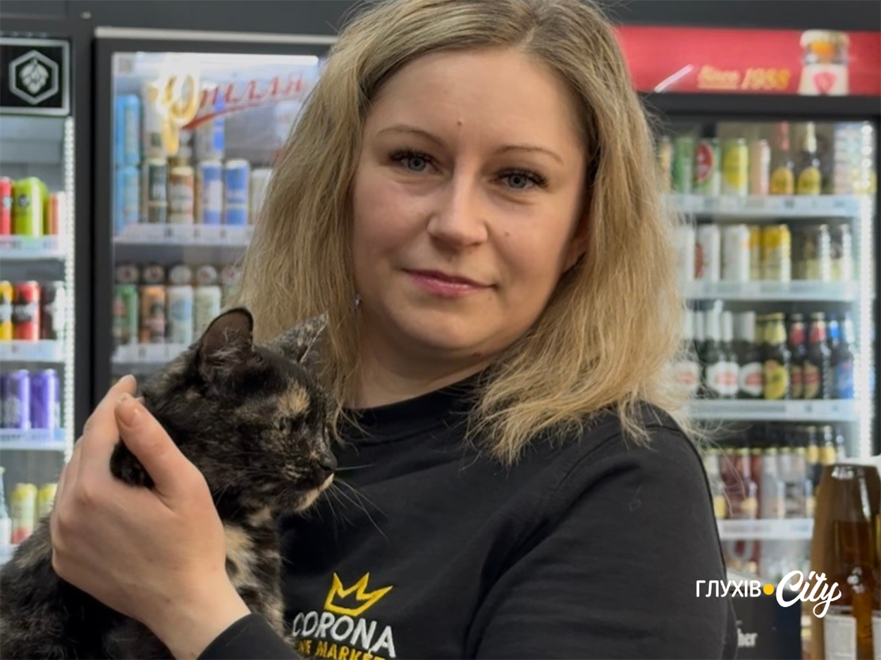 Вона з’явилася біля магазину під час масованих обстрілів і залишилася назавжди. Безхатня кішка Мурка сама обрала собі дім – глухівську крамницю, де тепер щоранку зустрічає працівників і покупців, спить на коробках із товаром та ніжиться на сонці біля вітрини. Її годують, доглядають і люблять усі – від персоналу до відвідувачів. Це історія про турботу, людяність і маленьке тепло, яке живе навіть поруч із війною.
