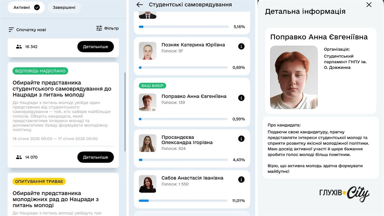 Студентка Глухівського НПУ імені Довженка претендує на місце у складі Національної ради з питань молоді. Голосування за кандидатів проходить в «Дії» з 14 до 17 січня 2026 року.