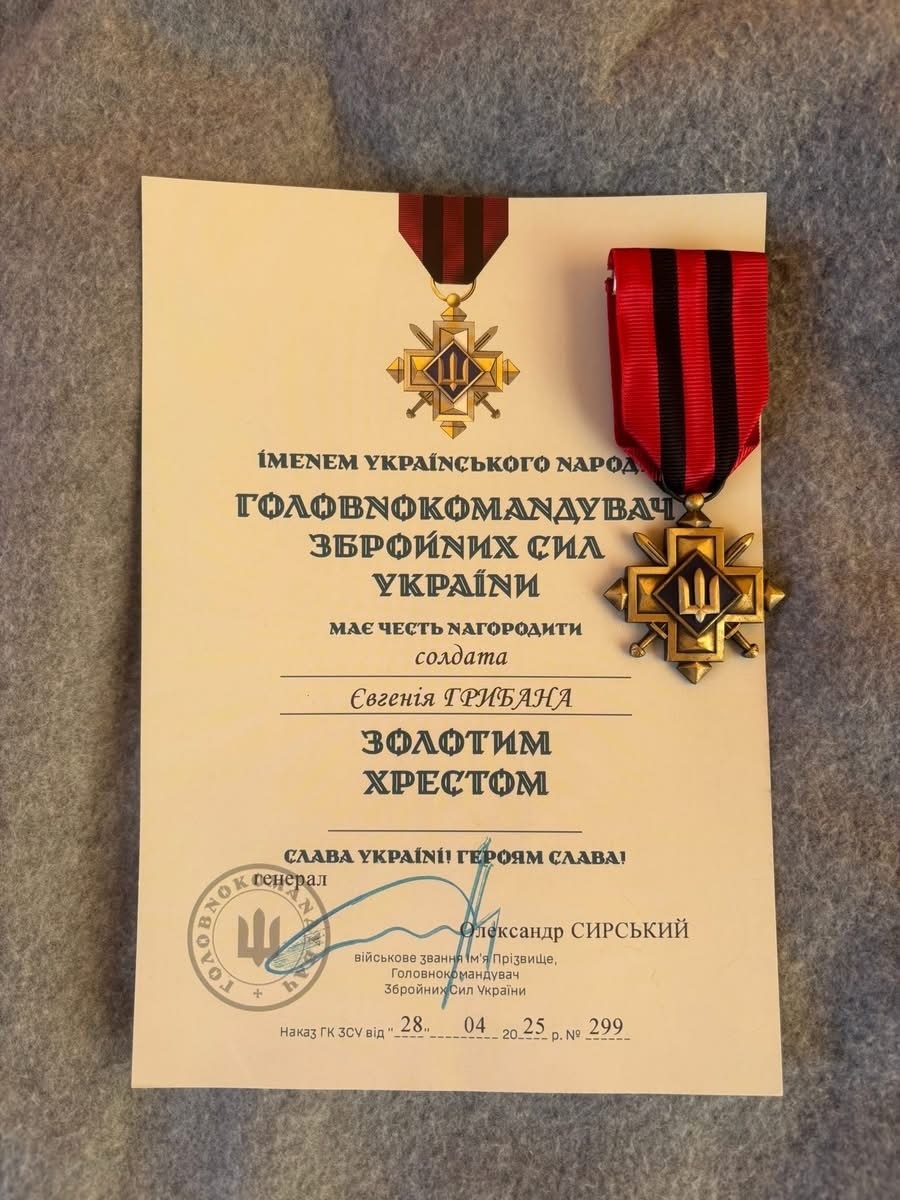 Євгенія відзначили «Золотим Хрестом». Цю нагороду вручають рядовим, сержантам і старшинам ЗСУ за мужність і успішне виконання завдань під час бою.