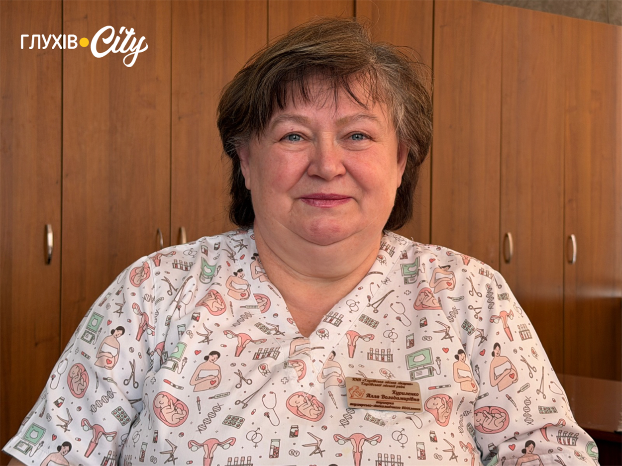 Алла Куриленко вперше переступила поріг Глухівського пологового будинку ще студенткою медичного училища. Тоді вона прийшла сюди на переддипломну практику, навіть не здогадуючись, що це місце стане роботою її життя. Скільком дітям за роки роботи допомогла зʼявитися на світ, жінка каже, не може навіть порахувати. Але свої перші пологи пам’ятає донині.