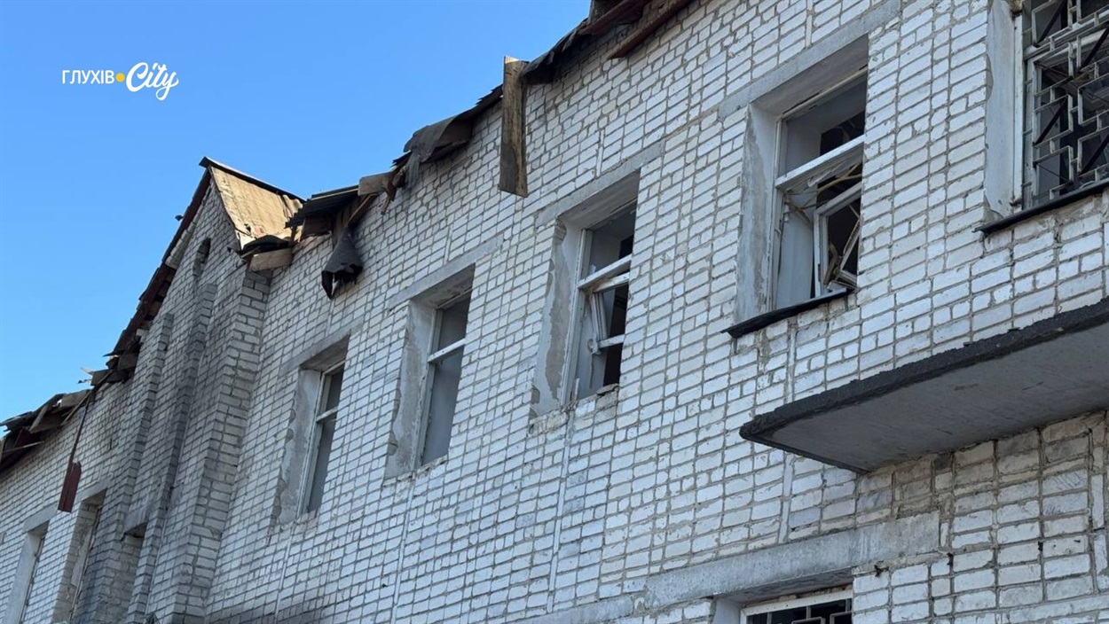 На фото — наслідки російського удару по адмінбудівлі в Глухові, який стався сьогодні близько 10:00 ранку.