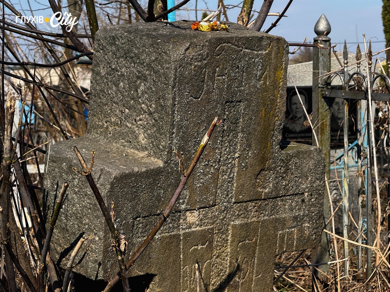 «Цей хрест – особливий. Якщо поруч стоять пам’ятники початку 20 століття: рівненькі та витончені, то цей – прям грубий, витесаний з однієї брили пісковика. Він був майже наполовину закопаний у землю. Коли ми його розчистили, виявилося, що це найстаріше ідентифіковане поховання на всьому кладовищі, яке датується кінцем 18 сторіччя», – розповідає дослідник.