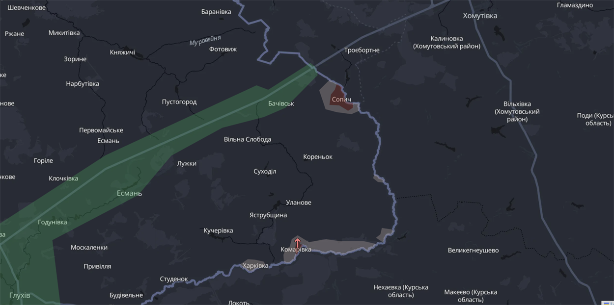 На початку березня солдати рф вивезли на свою територію із села Сопич Есманьської громади 19 місцевих, які ще залишалися в населеному пункті. Нині на мапі DeepState Сопич, а також частина Комарівки — у "червоній" зоні. Ще понад 16 кв. км — у "сірій".
