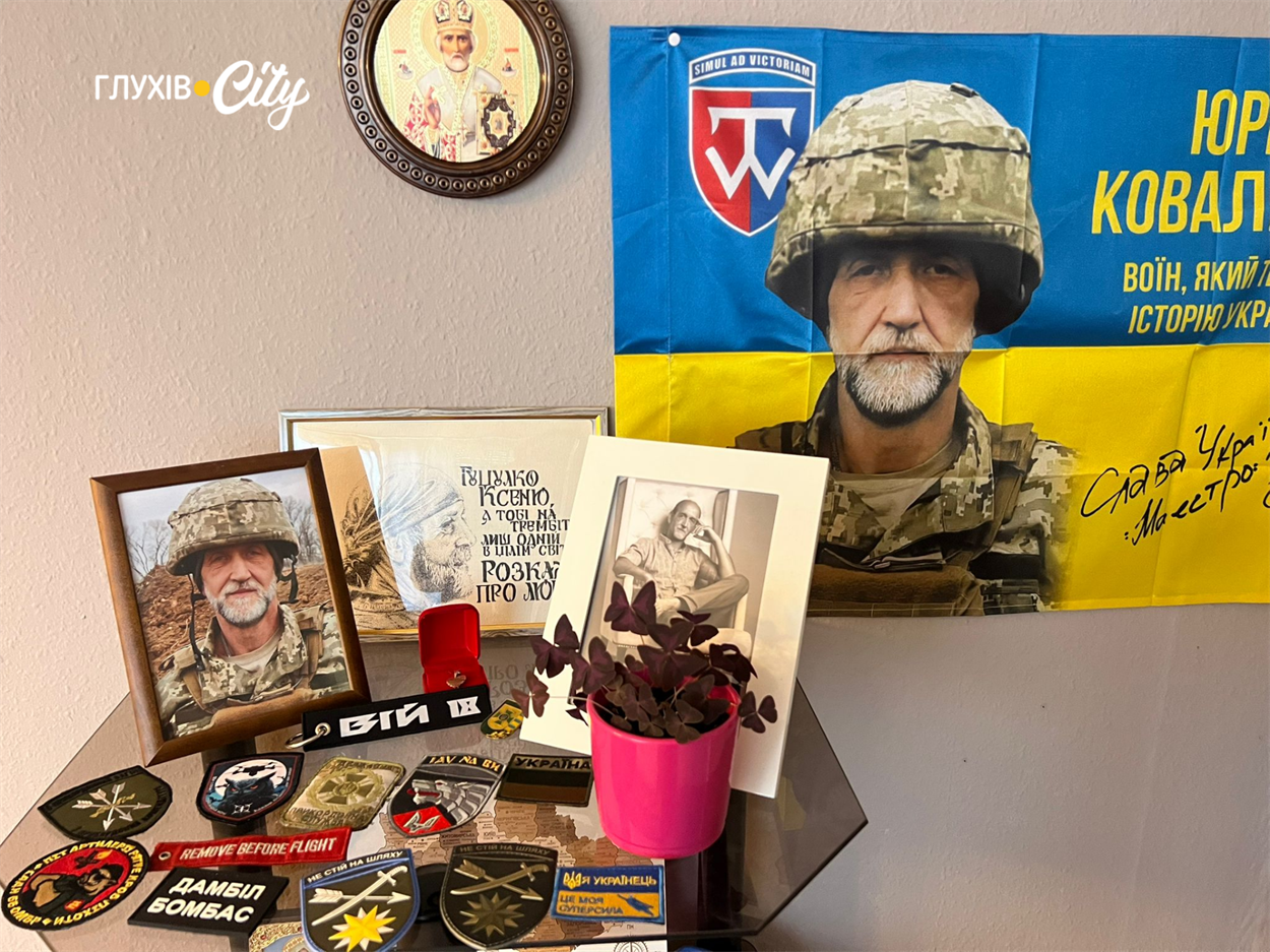 Те, що сьогодні гості розглядають із захватом, починалося з дуже особистого болю — куточка пам’яті за батьком, Юрієм Коваленком. Спершу там було лише фото та один український стяг, який Іванна купила сама.