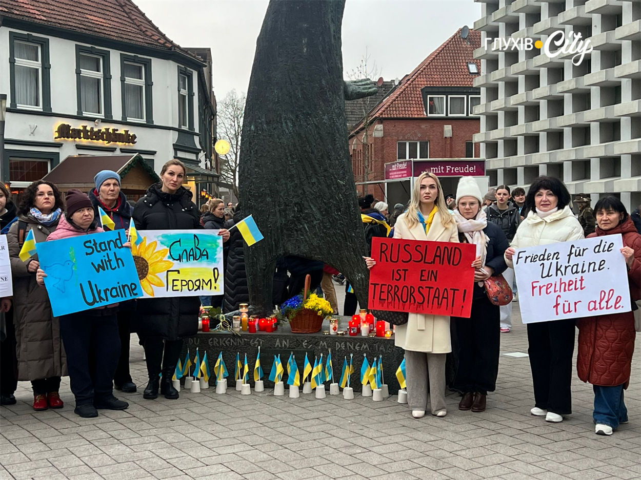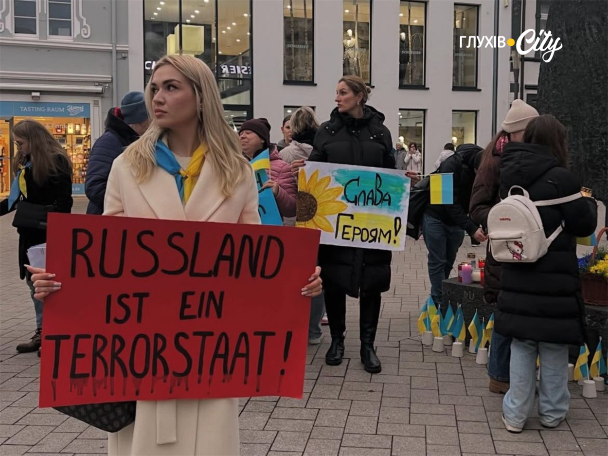«24 лютого 2026 року був великий захід, я допомагала зі сценарієм. Прийшло багато людей, були і німці. Я завжди показую портрети глухівчан, бо хочу, щоб про них знав світ. Дуже приємно, що за кордоном є такі свідомі люди».
