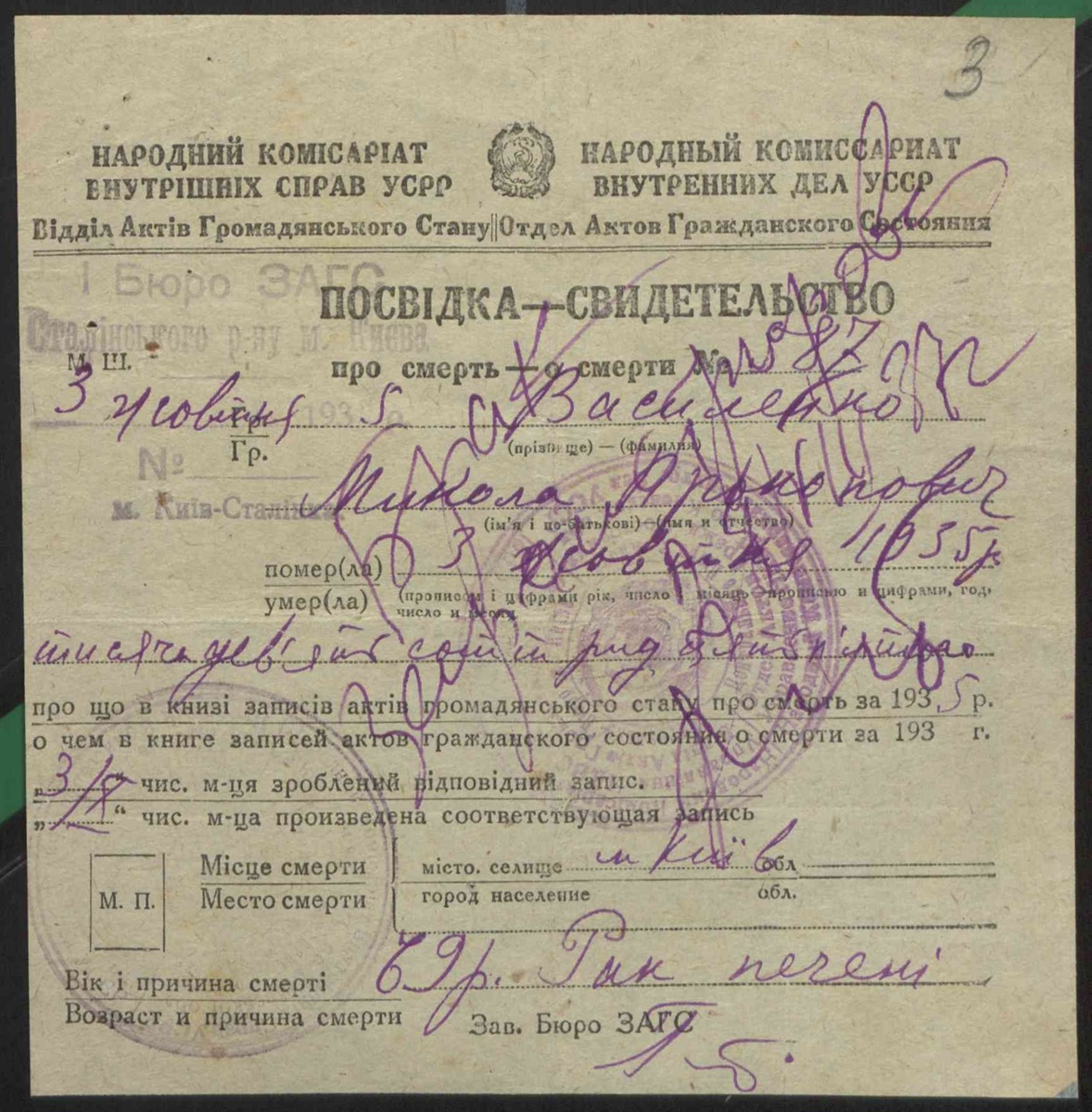 Помер видатний учений 3 жовтня 1935 року. Його було поховано на Лук’янівському кладовищі Києва.
