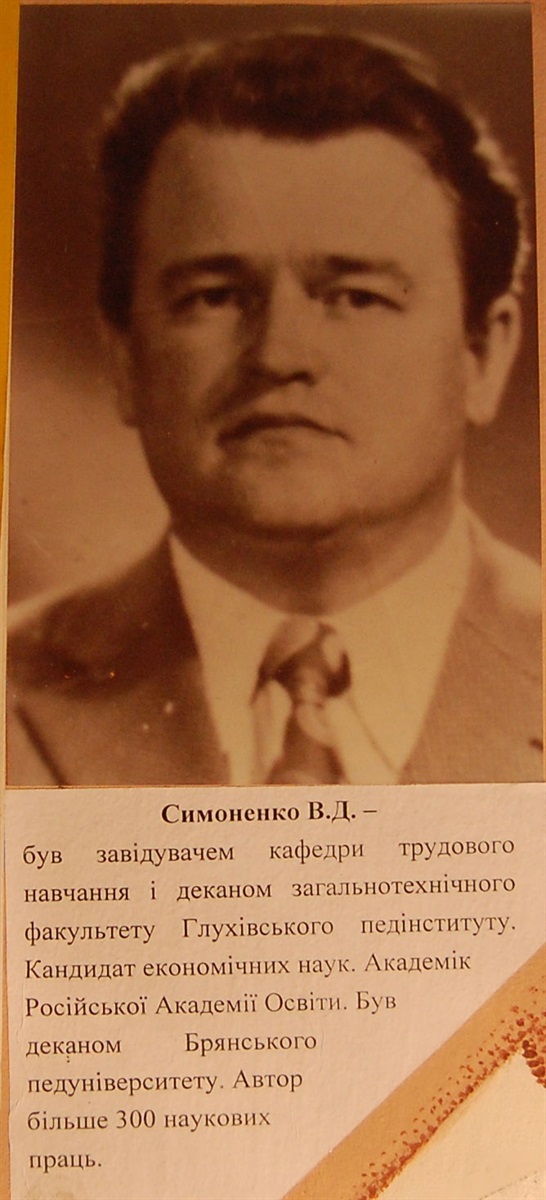 До 20-річчя від дня смерті Віктора Дмитровича Симоненка (1937-2006) – українського педагога, доктора педагогічних наук, доктора економічних наук, професора, проректора по навчально-науковій роботі (1983-1985), декана факультету з підготовки вчителів загальнотехнічних дисциплін (1976-1983), завідувача кафедрою трудового навчання та креслення (1985-1986) Глухівського державного педагогічного інституту імені С. М. Сергєєва-Ценського.