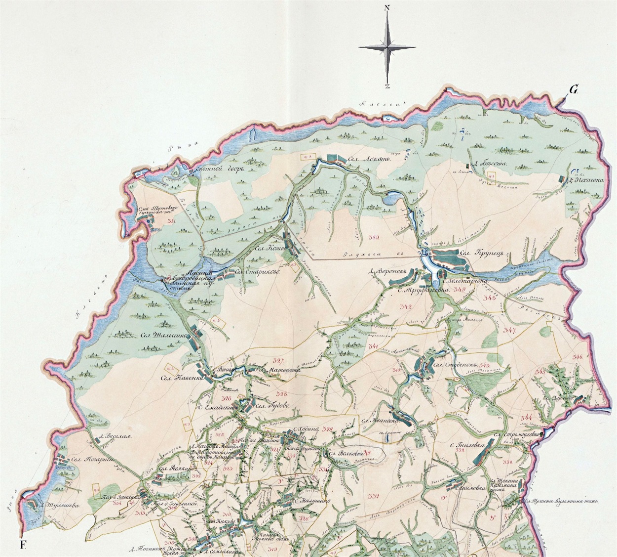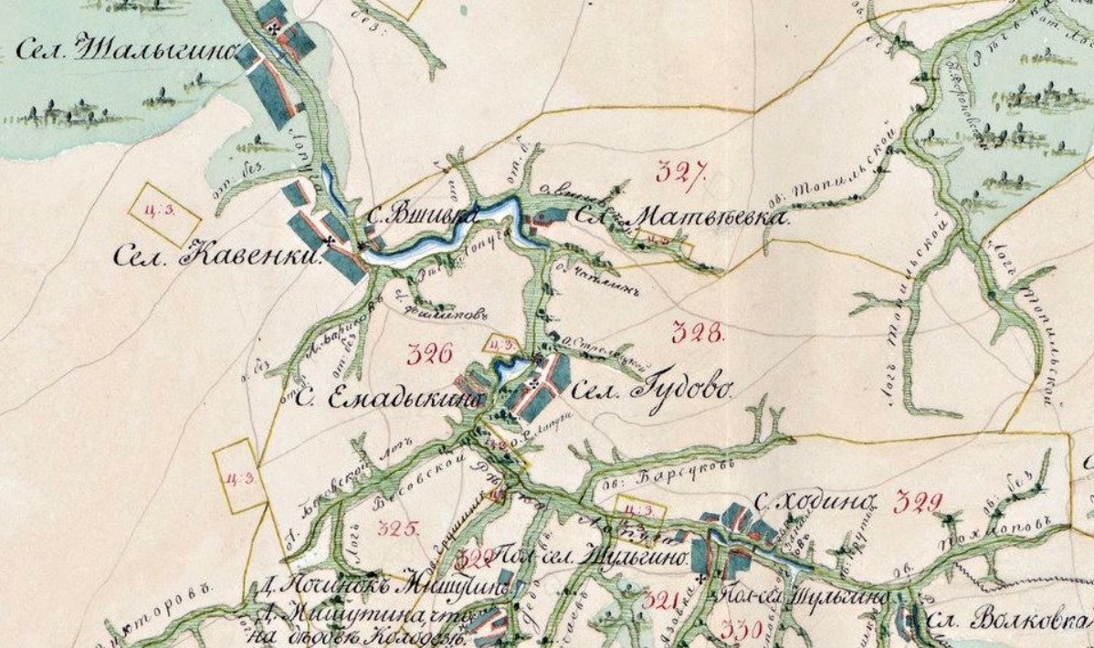 По правий бік річки жив дідич Мошкін. Яр, над яким стояв будинок поміщика, мешканці села називають й досі Мошкін. А по лівий бік річки жив поміщик Букасов. Пагорб, де стояв маєток, називають “Букасів пагорб”. За картою Крупецької волості 1785 року в Ходине вже була дерев’яна церква. Вона якраз і стояла на лівій південній стороні села. Точніше на околиці на березі вже не існуючої річки Язовка.