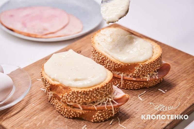 На сандвіч додайте по 2 столові ложки соусу бешамель.